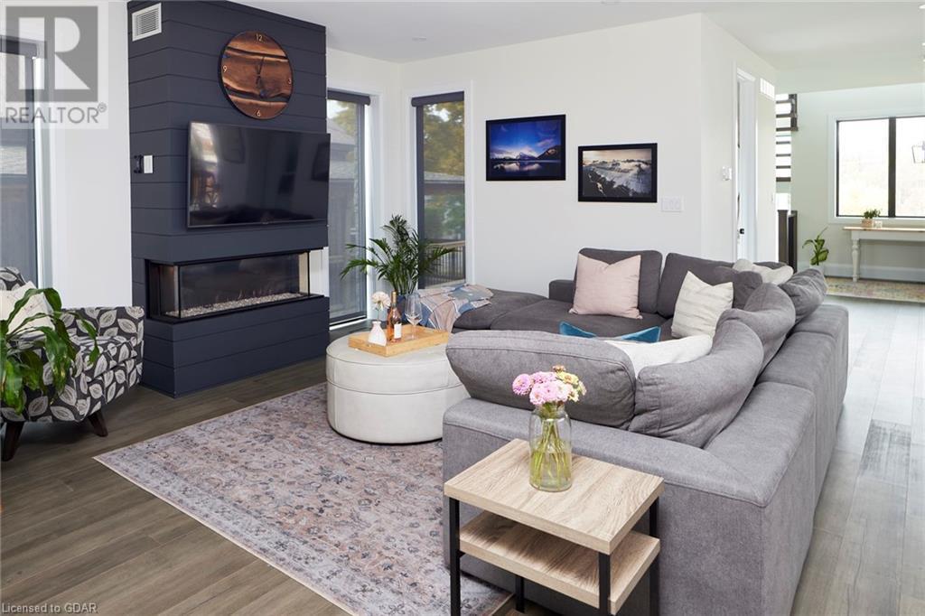 Rare custom-build opportunity W/stunning finishes on beautiful 50ft lot W/spectacular views of downtown Guelph! King St is one of the most sought-after streets in Downtown known for its picturesque tree-lined streets, executive homes & scenic views. Short stroll to all amenities downtown has to offer: restaurants, bakeries, boutique stores, nightlife & more! Either stick W/the proposed plan or customize it to create your dream home! Built by Bellamy Custom Homes known for its attention to detail, high-quality construction & outstanding customer service. Covered porch welcomes you into grand foyer W/beautiful tray ceilings. To the left is a private office. Dining room offers tray ceilings & butlers pantry leading to spectacular kitchen W/state-of-the-art B/I appliances, high-end cabinetry & B/I pantry. Massive centre island for casual dining as well as large eat-in area W/massive windows. Open to family room W/tray ceilings, fireplace surrounded by custom B/I & wall of windows providing scenic views. Sliding doors lead to large covered deck. Mud room W/custom B/I & access to garage completes this level. Upstairs stunning primary suite with W/I closet & massive walk-through closet! Sliding doors lead to private balcony so you can enjoy views of the River & downtown! Double-sided fireplace in spa-like ensuite W/glass shower & custom tiling, oversized vanity W/double sinks & soaker tub. There are 3 other spacious bedrooms W/tray ceilings, large windows & direct access to bathrooms. There is charming reading nook & laundry room W/sink & B/I storage. Finished W/O bsmt W/rec room, 5th bedroom & bathroom. Walk to town & grab a drink at Springmill, have dinner on La Cucina's rooftop terrace or browse boutique stores! This is not just a home, this is a lifestyle! Great location for commuters due to its close proximity to the GO Station. Guelph is investing over $300 million into its downtown area making this location even more desirable & resulting in excellent appreciation (id:6909)